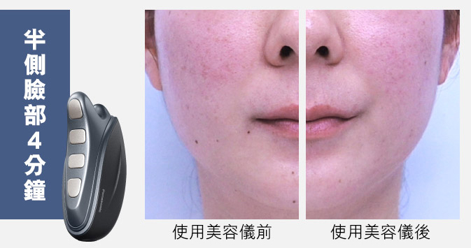 【測試方法】一次使用,使用個人護膚品及 WARM TREATMENT 模式,對半邊臉部進行 4 分鐘的護理。