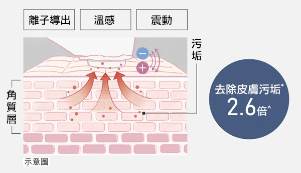 離子導出、溫感和震動可去除肌膚及毛孔中的角質和污垢,為後續的深層滲透護理做好準備。