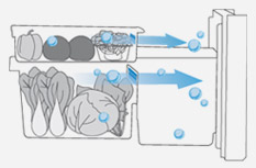 nanoe® X are nano-sized ions born from the moisture in the air, which have a bacteria elimination effect. They float to every corner of the refrigerator to keep food fresh and clean.